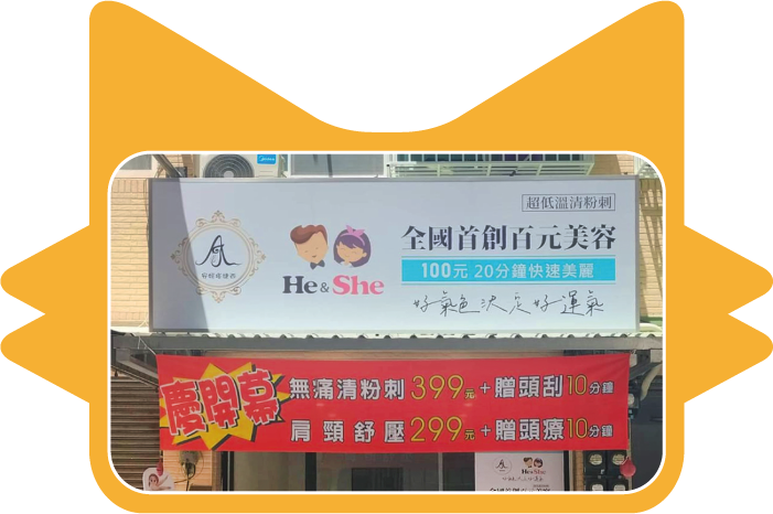 "He&She"是全台首创的百元快速美容中心,已在台湾高雄设立了4家分店。该中心运用医美领域的超低温技术和30多年的皮肤经验,研发出简单、高效的美容方案。